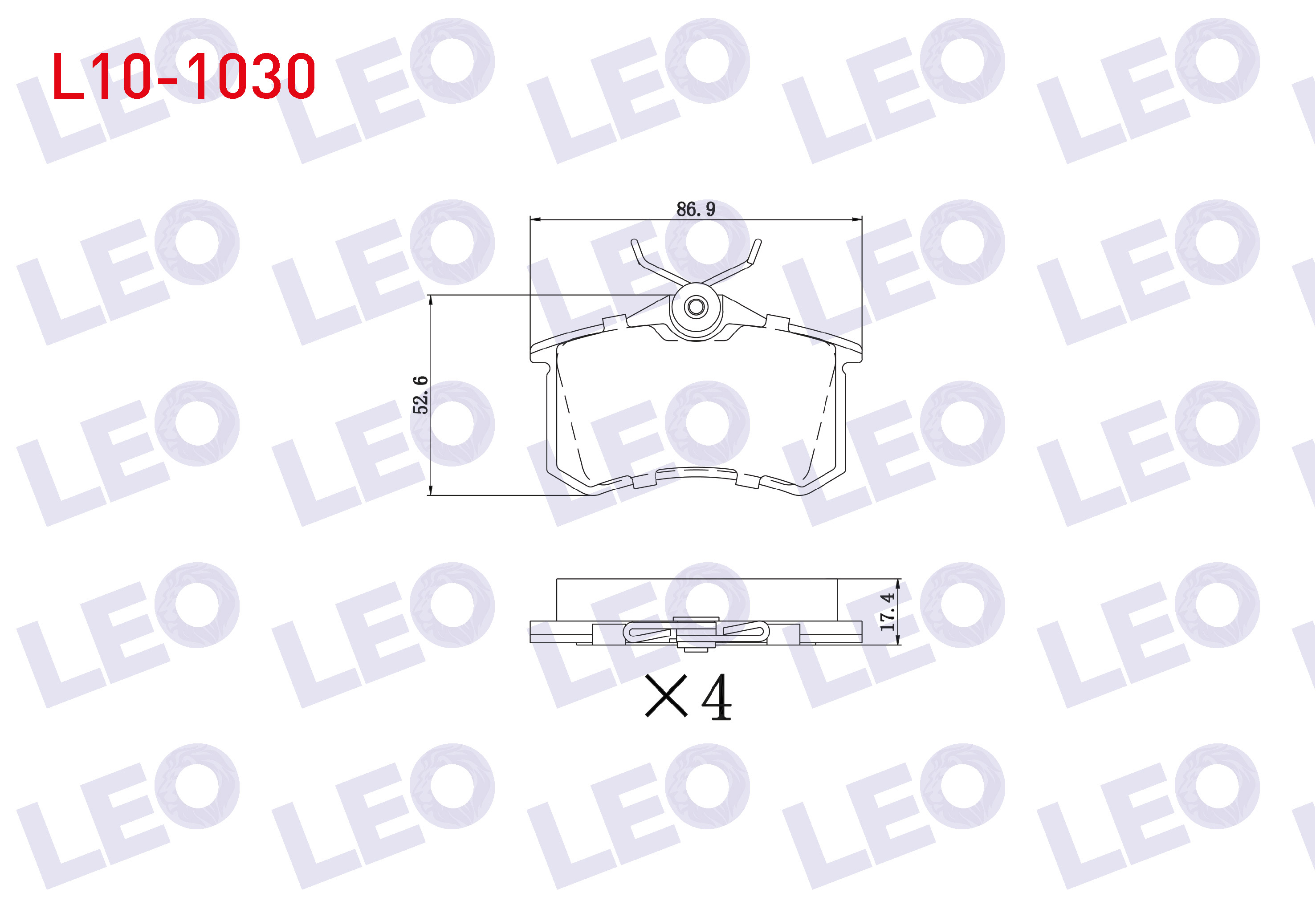 LEO L10-1030 | Fren Balata Arka 17,4mm Golf IV-V-VI / Jetta V-VI / Polo III-IV-V-VI / Caddy III / Clio III / Megane III-IV / 207 / 208 / 307 / 308 / Partner / C3 II-III / C4 II / A3 II / A4 II-III / A6 II / N II-III / Ibiza III-IV / Crossland