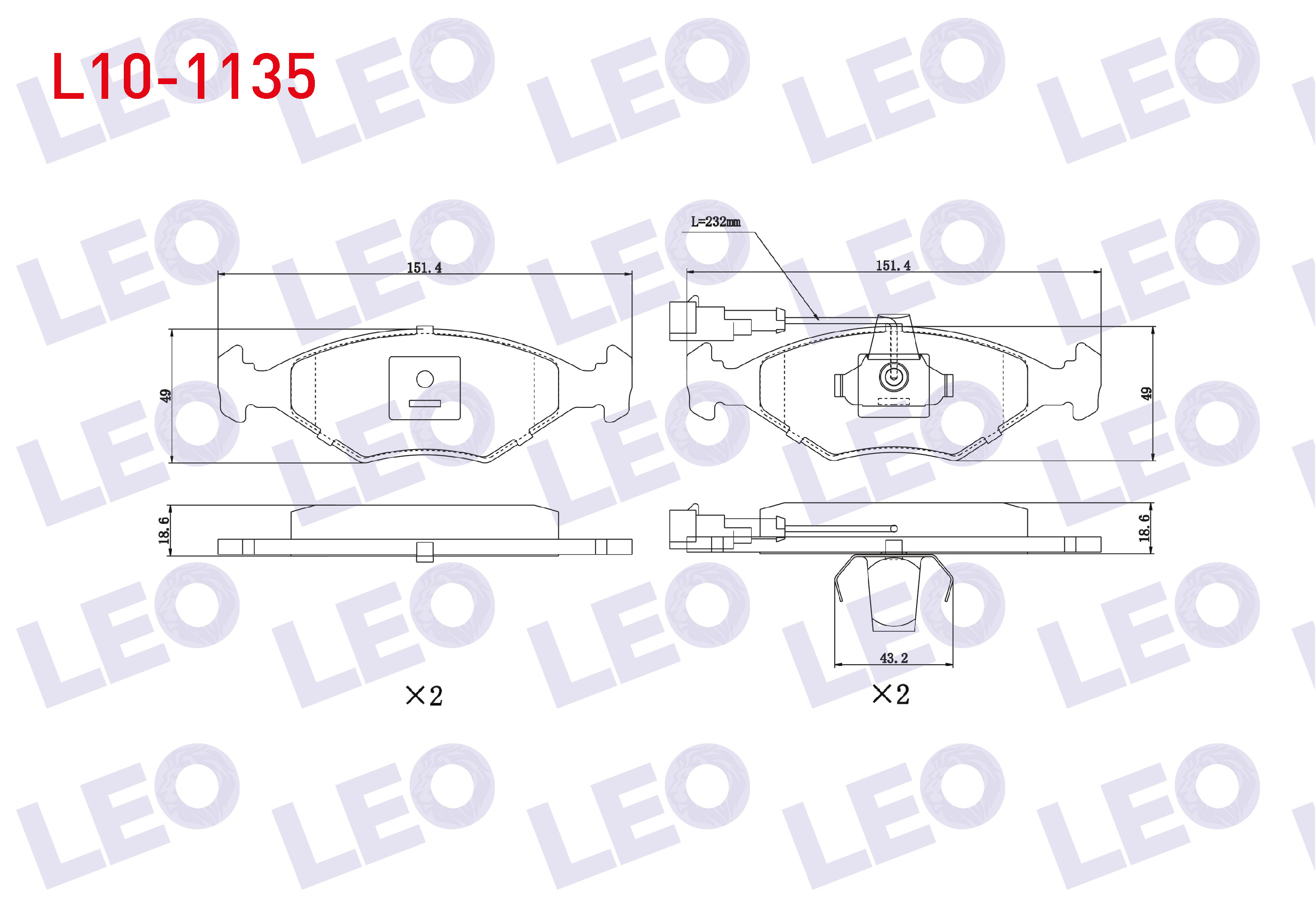 LEO L10-1135 | Fren Balata Ön Fişli Fiat Palio 1.2İ 16V 1996-2005 / Palio 1.4İ 1996-2005 / Palio 1.6İ 16V 1996-2005 / Albea 1.2 1996-2003 / Albea 1.6 1996-2003 / Siena 1.4İ 1997-2002 / Siena 1.6İ 16V 1997-2002