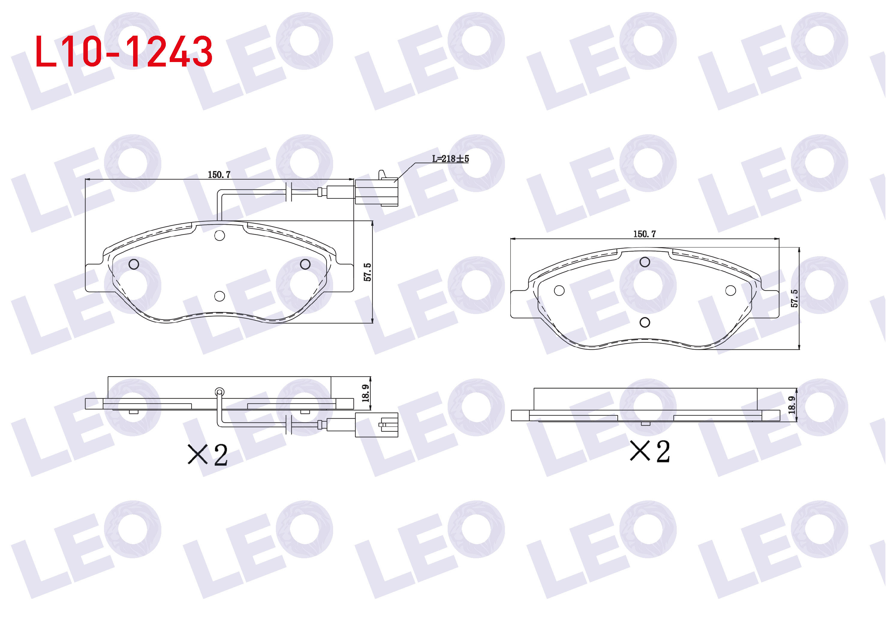 LEO L10-1243 | Fren Balata Ön Fişli Fiat Stilo (192) 1.4 16V 2001-2010 / Mıto (955) 1.4 T 2008-/ Mıto (955) 1.3 JTD 2008-/ Mıto (955) 1.6 JTD 2008 -