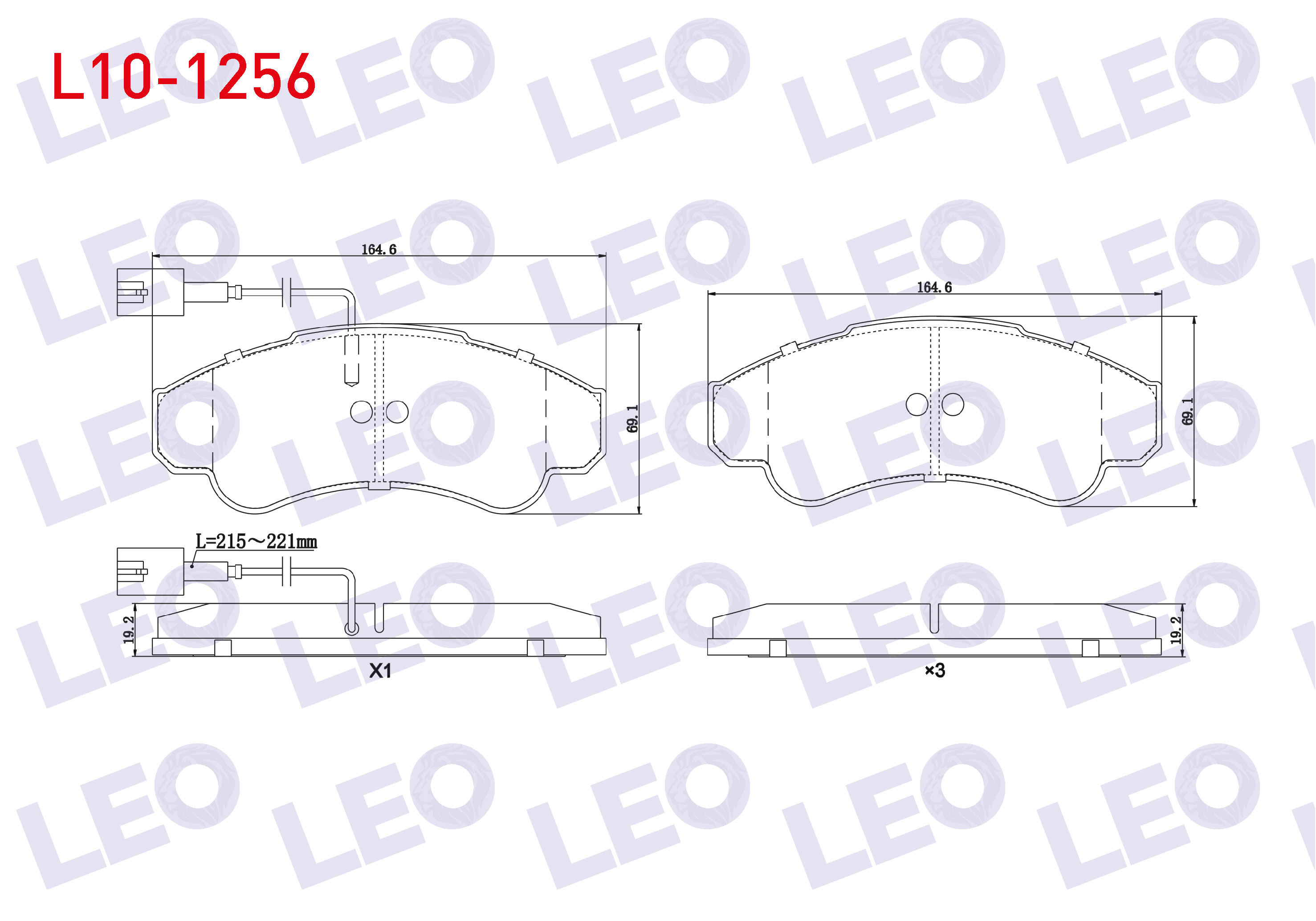 LEO L10-1256 | Fren Balata Ön Fişli Fiat Ducato (244) 2.3 JTD 2002-2006 / Ducato (244) 2.8 JTD 2002-2006 / Citroen Jumper II 2.8 HDI 2002-2006 / Peugeot Boxer II 2.0 HDI 2002-2006 / Boxer II 2.8 HDI 2002-2006