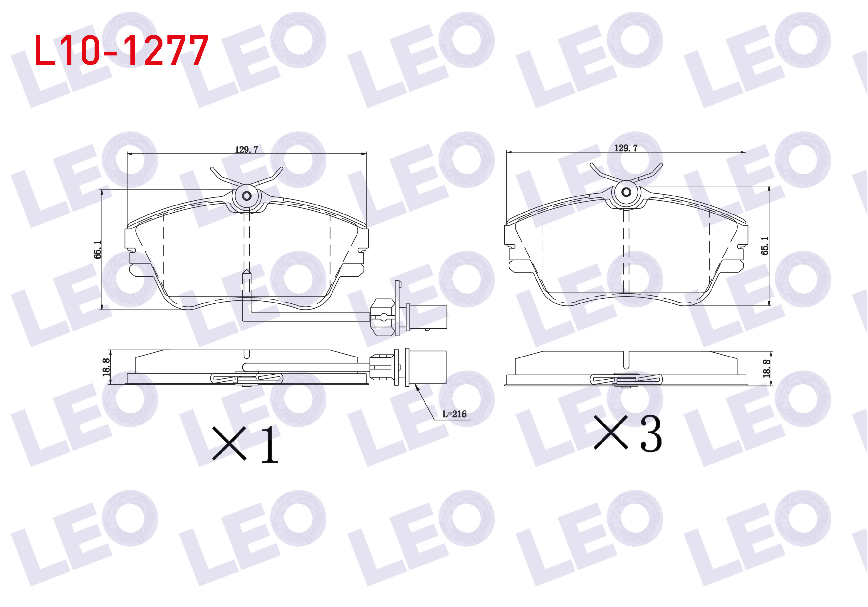 LEO L10-1277 | Fren Balata Ön Fişli Volkswagen Transporter IV (70Xb,70Xc,7Db,7Dw) 2.5 D 1990-2003 / Transporter IV (70Xb,70Xc,7Db,7Dw) 2.5 TDI 1990-2003