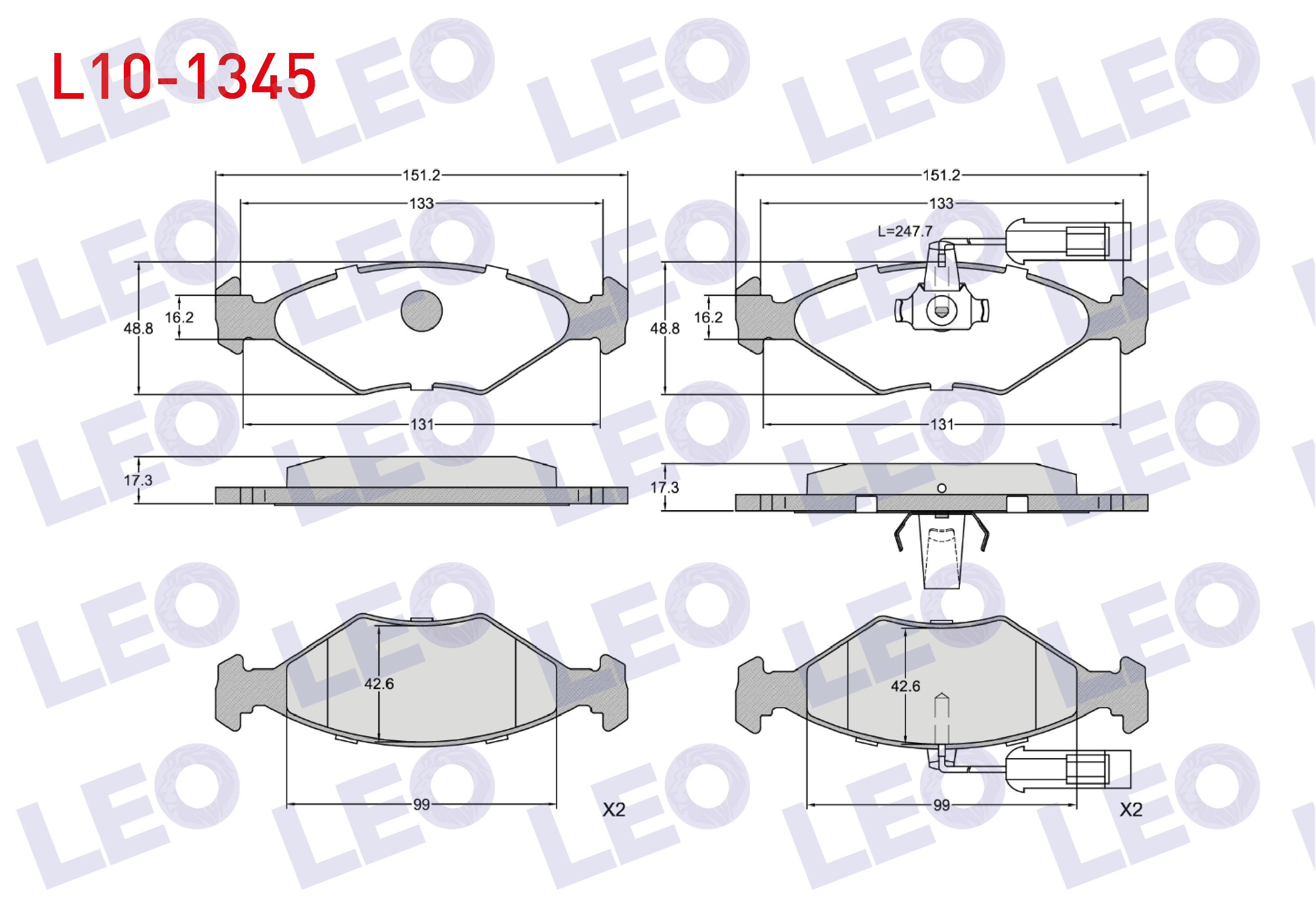 LEO L10-1345 | Fren Balata Fişli On Fiat Palio 1.2İ 16V 1996-2005 / 1.4İ 16V 1996-2005 / 1.6İ 16V 1996-2005 / Albea 1.6 1996-2003 / 1.2 1996-2003 / Siena 1.2İ 1997-2002 / 1.4İ 1997-2002 / 1.6İ 1997-2002