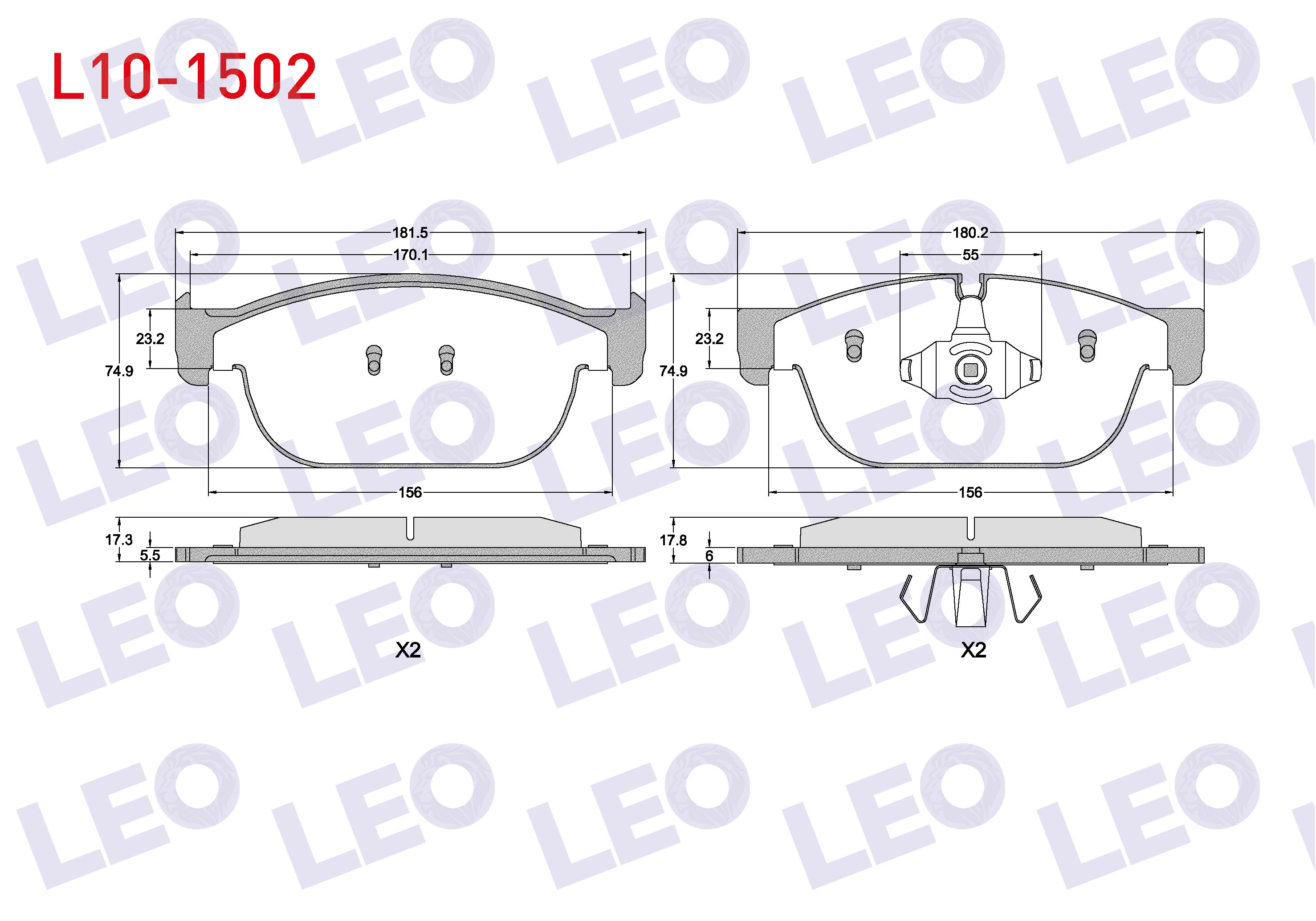 LEO L10-1502 | Fren Balata Ön Volvo Xc90 II 2.0 D5 2015-/ Xc90 II 2.0 T8 Hybrıd 2015-/ S90 II 2.0 D5 2016-/ V90 II 2.0 D5 2016-/ Xc60 2.0 D4 2015 -