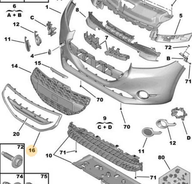 MOPAR (PSA) 1607428680 | Tampon Izgara Çıtası: Ön