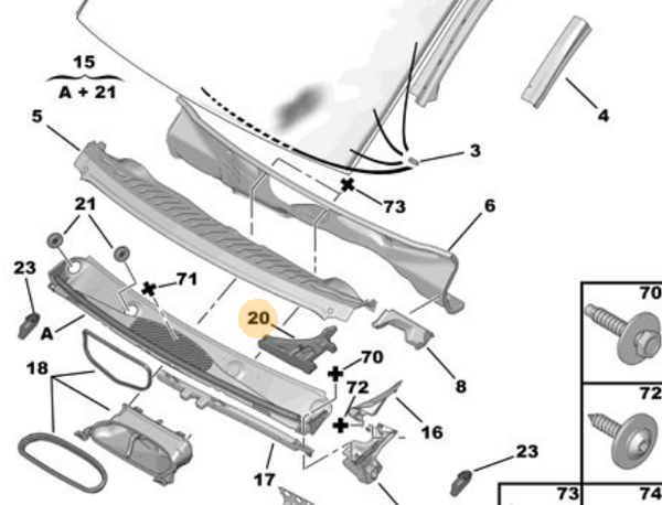 MOPAR (PSA) 8251.ES | Ön Cam Izgara Yan Izolatö Partner Tepee