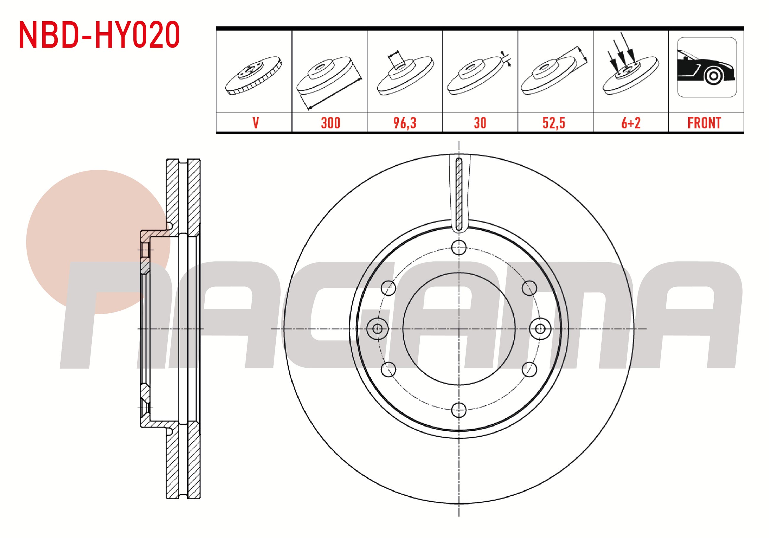 NAGAMA NBD-HY020 | Fren Diski Ön Havalı 6 Bjn 300X30x96,3X52,5 Hyundai H1 2.5 CRDI 2008-| 2 Adet Takım