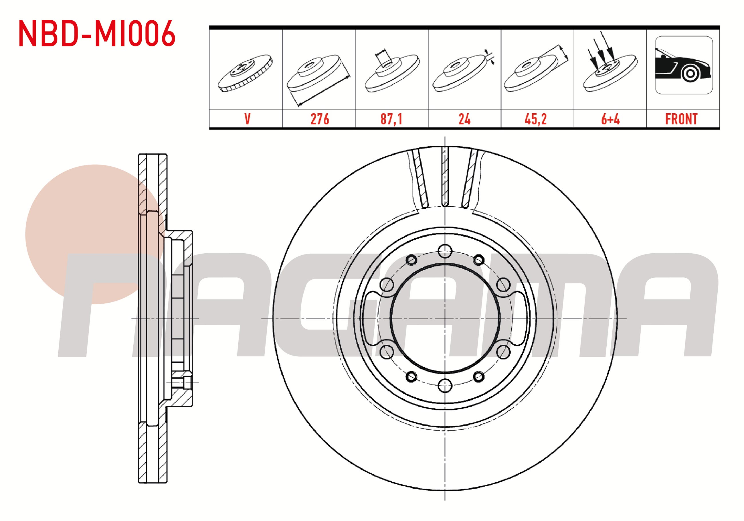 NAGAMA NBD-MI006 | Fren Diski Ön Havalı 6 Bjn 276X24x87,1X45,2 Mitsubishi L 200 (K7t,K6t) 2.5 D 4X4 1996-2007 / Pajero II 2.5 TD-2.8 TD-3.5 V6 4X4 1990-1999 | 2 Adet Takım