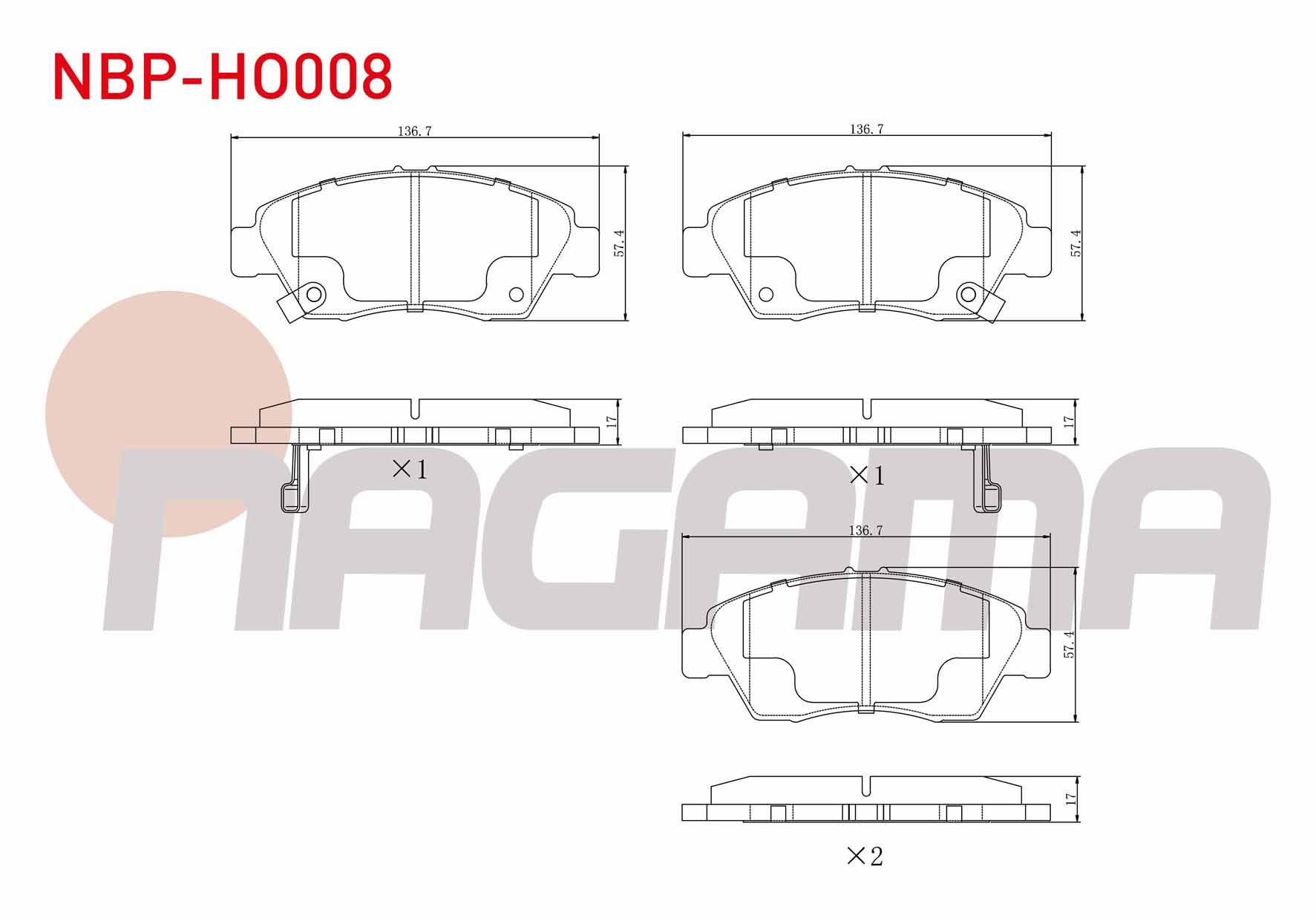 NAGAMA NBP-HO008 | Fren Balata Ön Ikazlı Honda Civic VI 1.6İ 1995-2001 / Civic VI 1.5İ 1995-2001 / Civic VI 1.6 I-Vtec 1995-2001