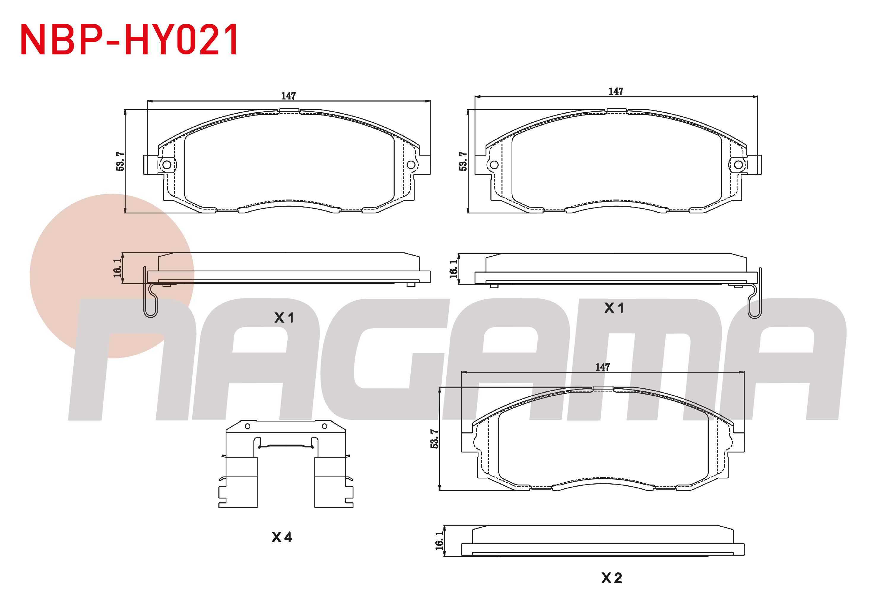 NAGAMA NBP-HY021 | Fren Balata Ön Ikazlı Hyundai Starex 2.4İ 1997-2003 / Starex 2.5 CRDI 1997-2007 / Starex 2.5 TD 1997-2003