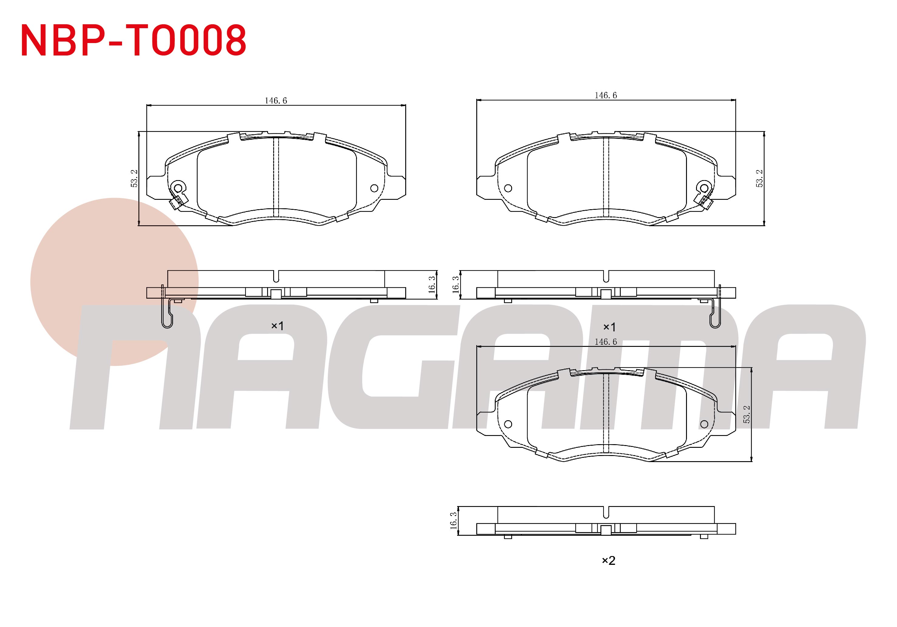 NAGAMA NBP-TO008 | Fren Balata Ön Ikazlı Toyota Hı-Lux Pick Up 2.5 D 2005-2011 / Hı-Lux Pick Up 2.5 D-4D 2005-2011