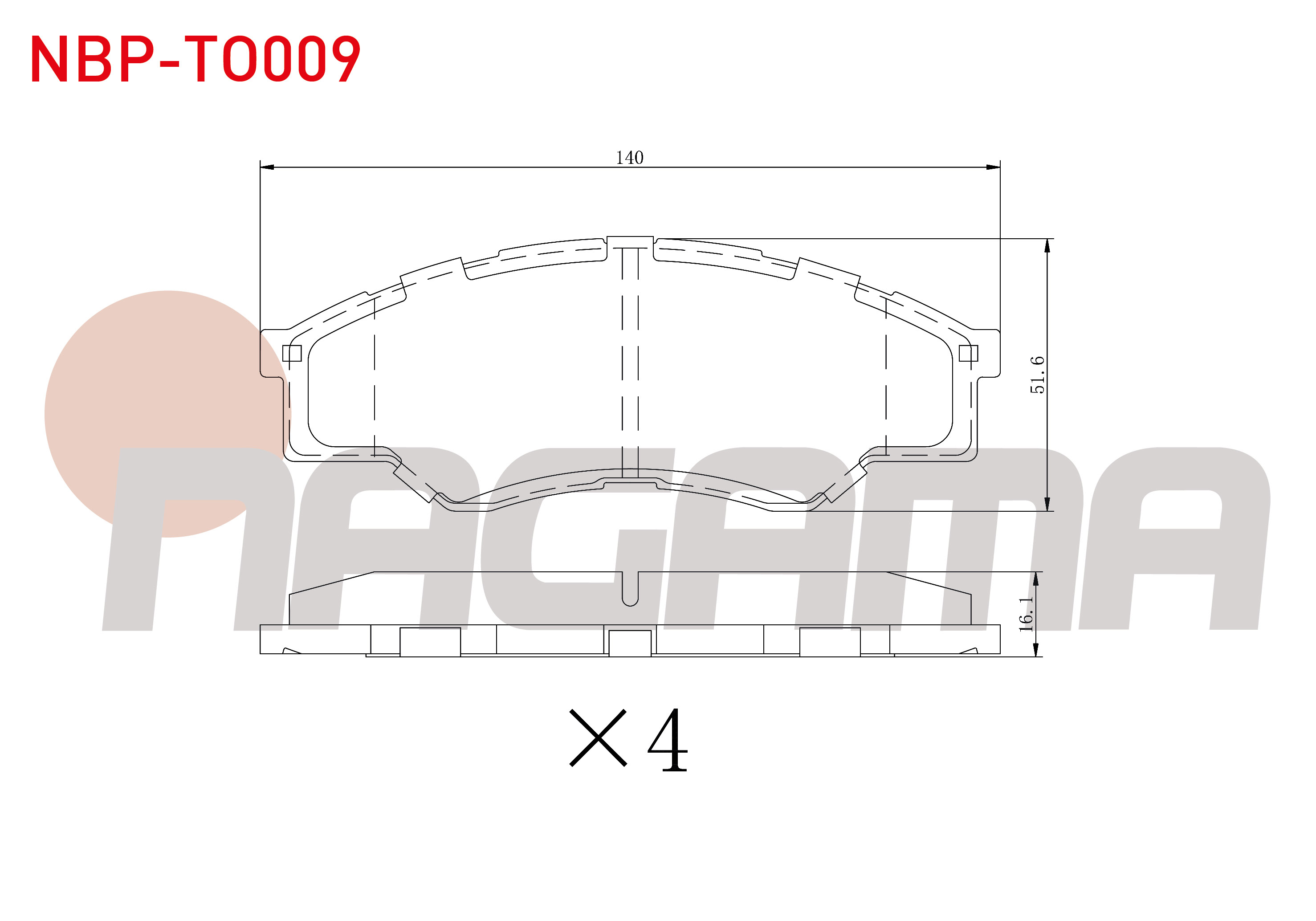 NAGAMA NBP-TO009 | Fren Balata Ön Toyota Hı-Lux Pick Up 2.5 D 2005-2011 / Hı-Lux Pick Up 2.5 D-4D 2005-2011 / Hı-Lux Pick Up 3.0 D-4D 2005-2011