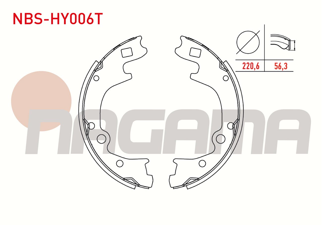 NAGAMA NBS-HY006T | Fren Pabuç Balata Arka 220,6X56,3mm + 1mm Daha Kalın Hyundai H100 Kamyonet 2.5 D 2004 -