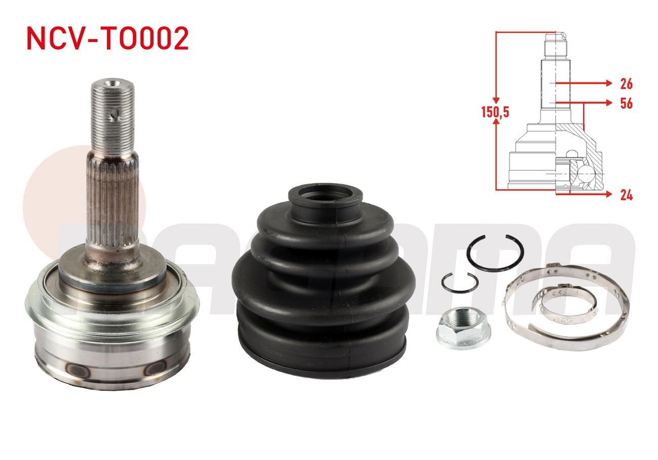 NAGAMA NCV-TO002 | Aks Kafası Sol-Sağ On Dıs 26X24x56 Uzunluk 150,6mm Toyota Corolla (_E9_) 1.6İ-1.8 D 1987-1993 / Rav4 I (Sxa1_) 2.0 1994-2000 / Camry (_V2_) 2.0 1986-1993