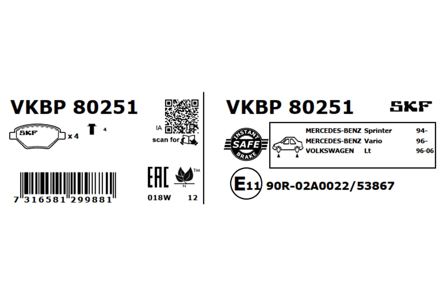SKF VKBP80251 | Fren Balata Ön-Arka Lt46-Sprinter