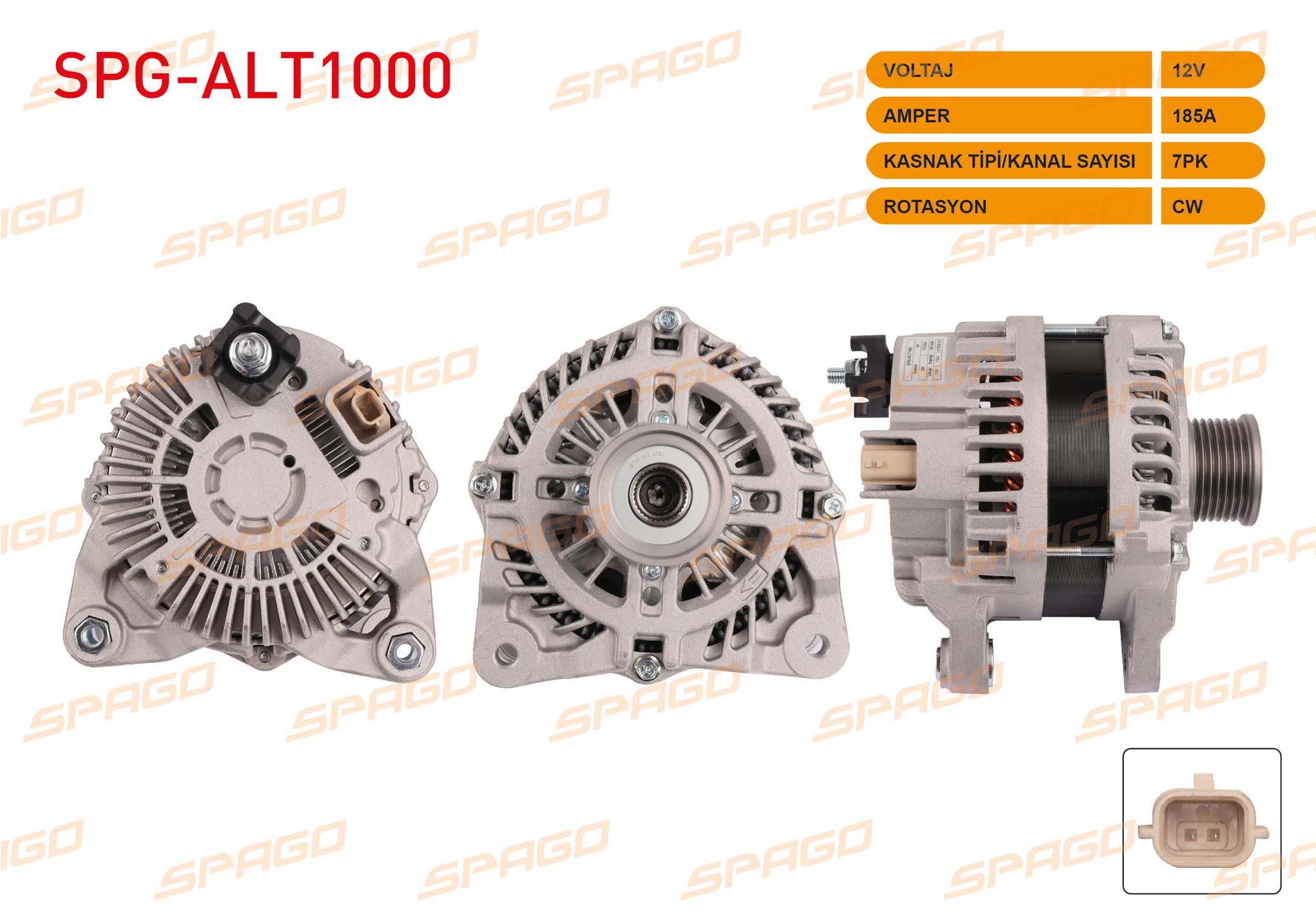 SPAGO SPG-ALT1000 | Alternatör 12V 185A 7Pk (Alt5340) Master III 10-25-Megane III IV-Fluence 13-15 (1.6 2.3 DCI Araclar İçin)