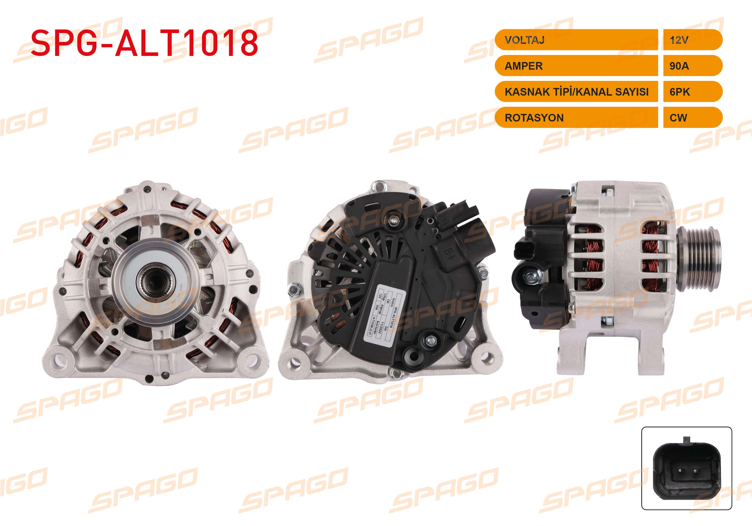 SPAGO SPG-ALT1018 | Alternatör 12V 90A 6Pk Nemo 08-12 / Bipper 08-12 (1.4 HDI Araclar İçin)