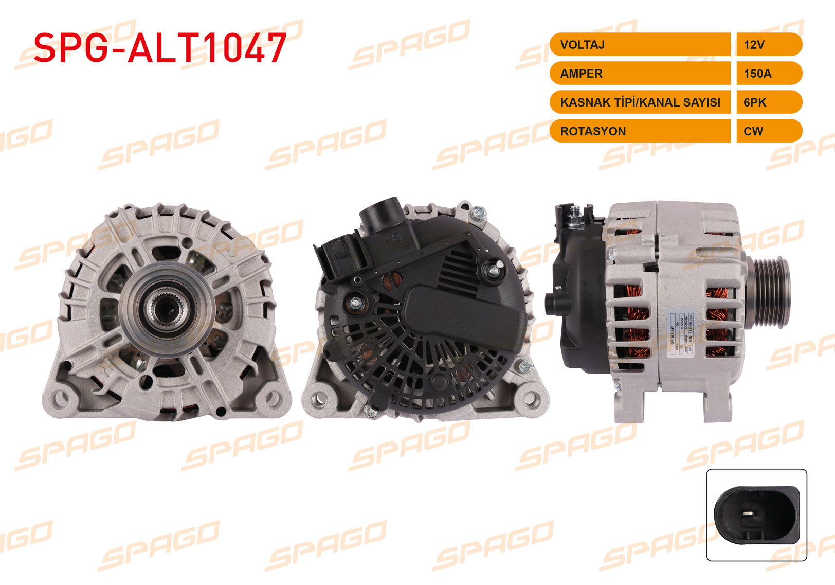 SPAGO SPG-ALT1047 | Alternatör 12V 150A 6Pk (Alt8128) Focus III-Fiesta VI-Connect 13-/ Volvo S40 S60 S80 (1.5 1.6 Dizel Araclar İçin)