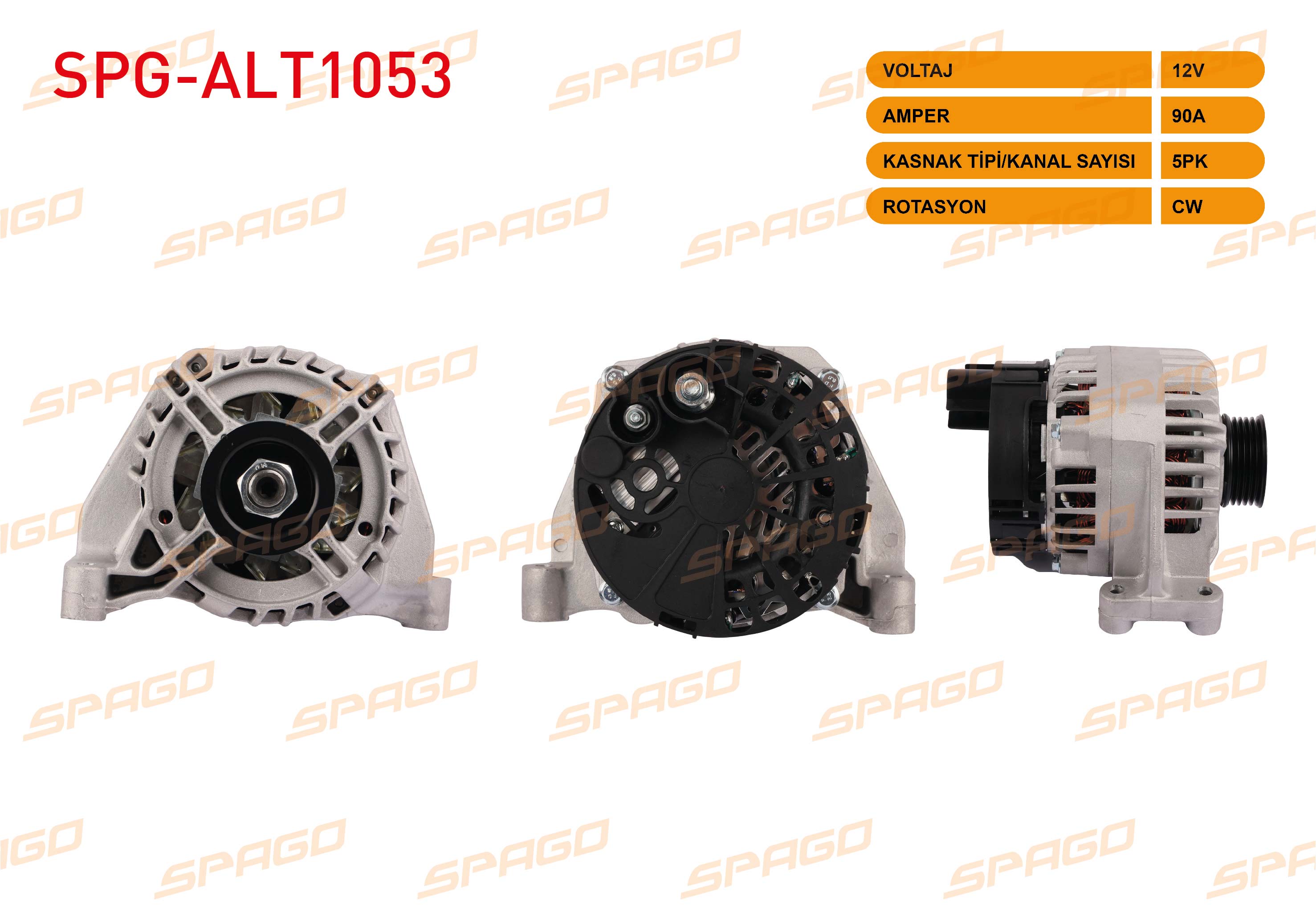 SPAGO SPG-ALT1053 | Alternatör 12V 90A 5Pk (Alt440) Linea 07-17-Egea 15-24-Punto 09-17 (1.2 1.4 Benzinli Araclar İçin)