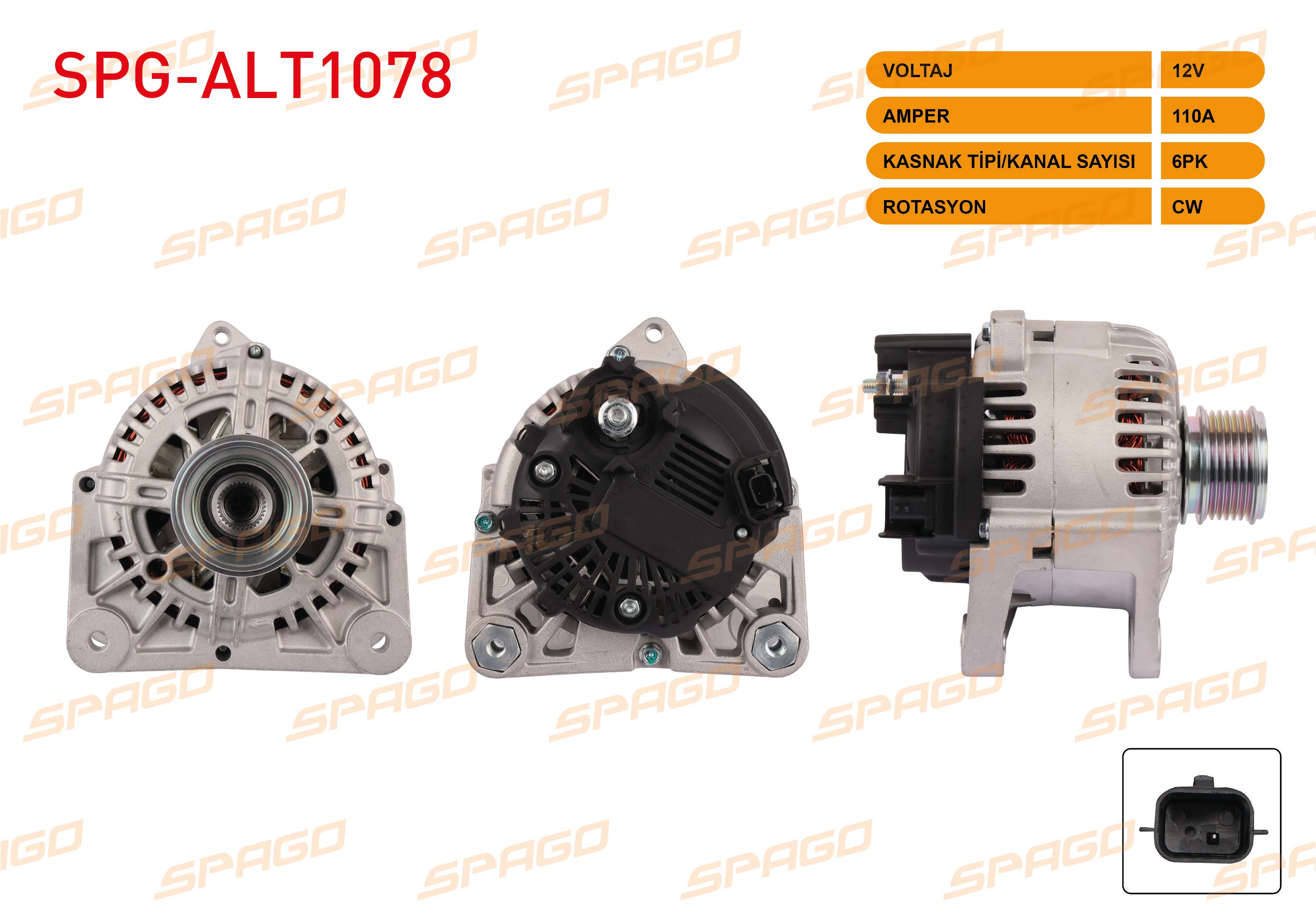 SPAGO SPG-ALT1078 | Alternatör 12V 110A 6Pk Clio II III-Megane I II III-Laguna-Fluence (1.4 1.6 Benzin 1.5 DCI Araclar İçin)