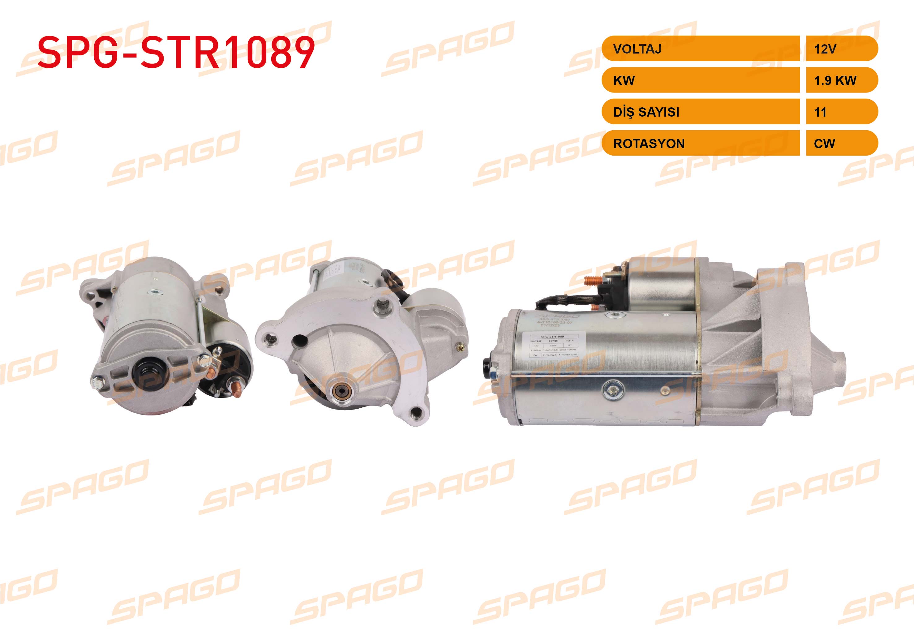 SPAGO SPG-STR1089 | Marş Motoru 12V 1.9Kw 11 Dıs Cw (Str3452) Boxer Expert 307 407 508 / Jumper Jumpy C4 C5 (2.0 2.2 HDI Araclar İçin)
