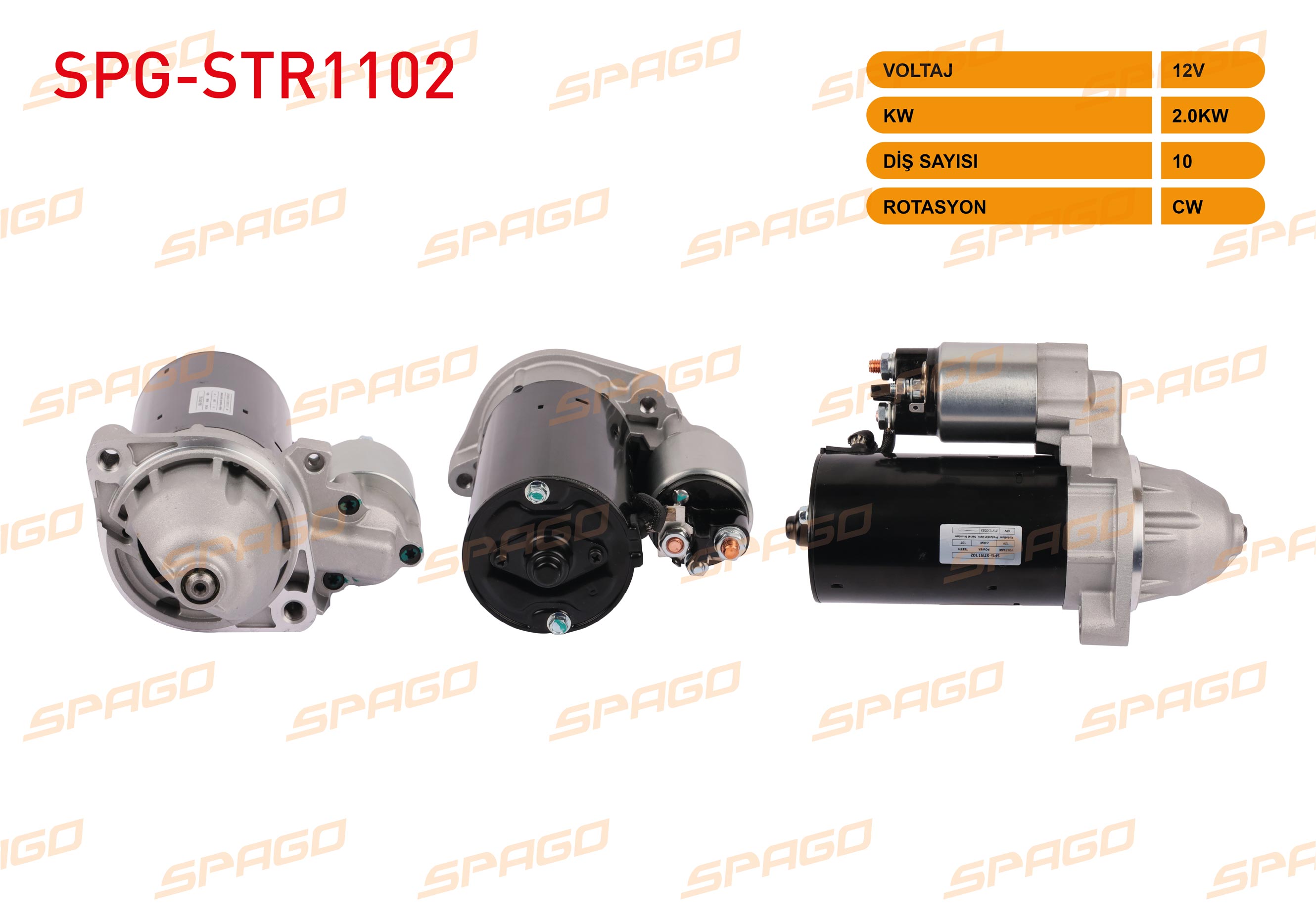 SPAGO SPG-STR1102 | Marş Motoru 12V 2Kw 10 Dıs Cw (Str3105) C (W202 W203)-E (W210 W211)-Sprinter 96-06 (Dizel Araclar İçin)
