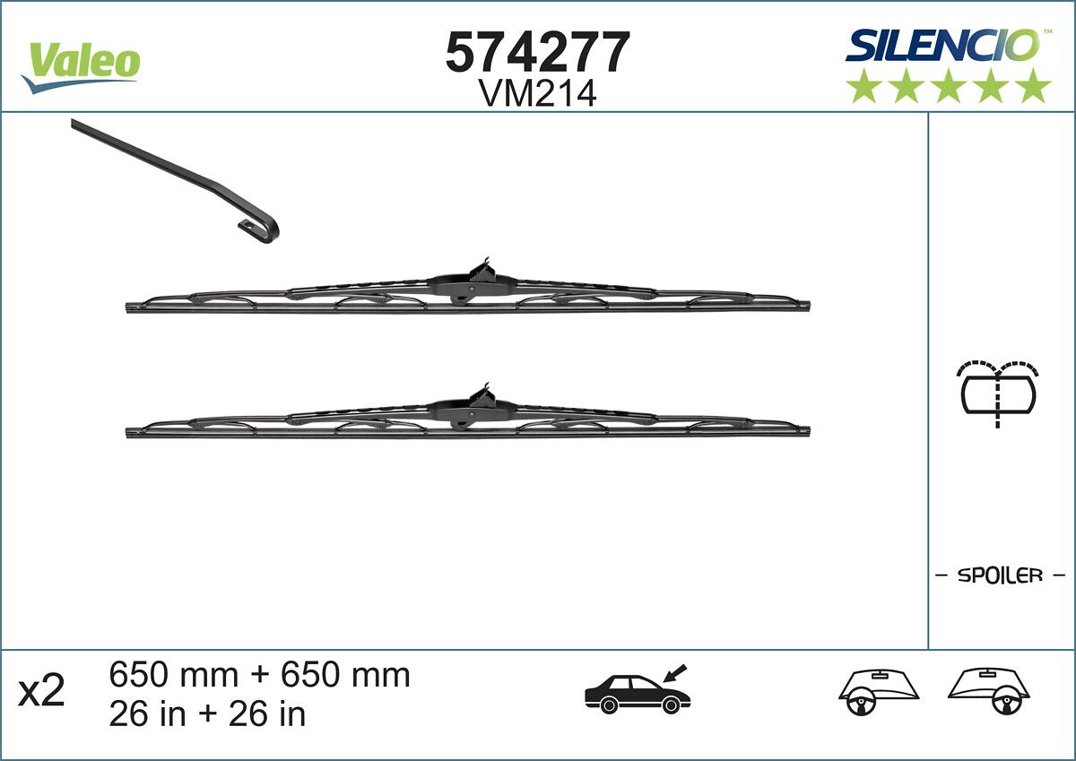 VALEO 574277 | Silecek Sılencıo (X2) Vm214 650 + 650mm (Citroen C8)