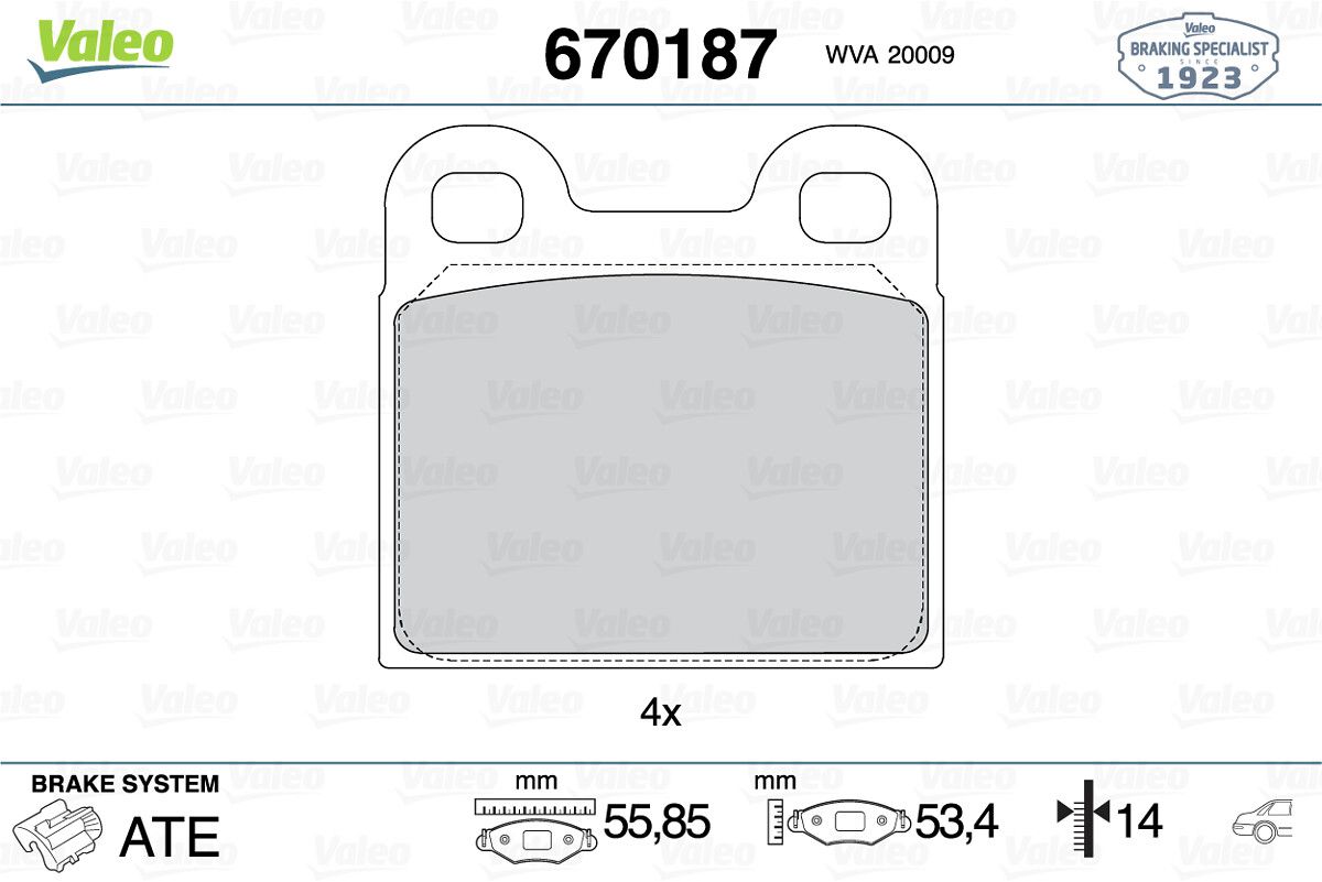 VALEO 670187 | Fren Balatası Arka Saab 90 84-87 900 84-93 9000 85-98 99 75-84