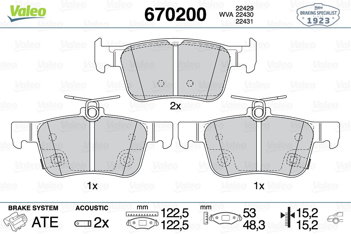VALEO 670200 | Fren Balata Arka 16-Civic