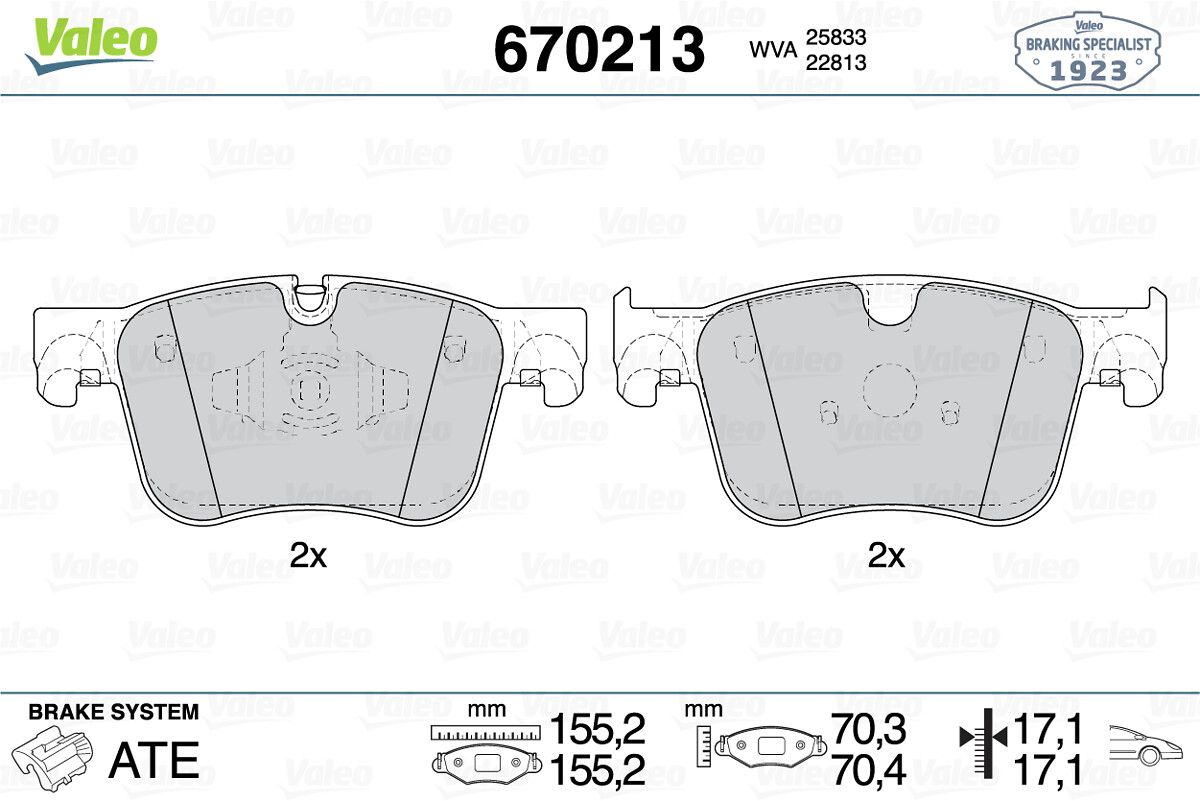 VALEO 670213 | Fren Balatası Ön-Peugeot 3008 2016 Opel Grandland Citroen C4 Picasso