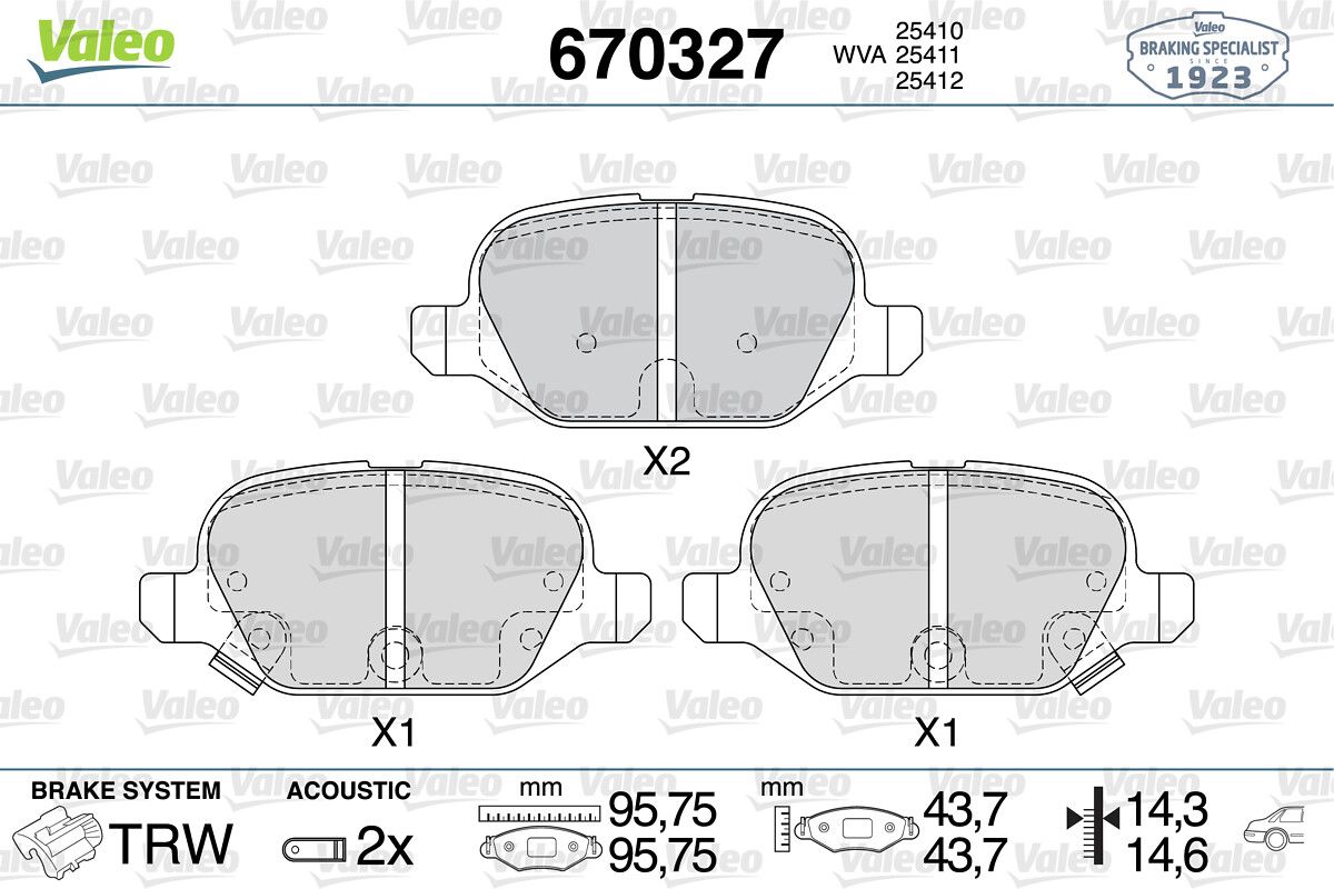 VALEO 670327 | Fren Balatası Arka Fiat Panda 1.3 D Multijet 12 -