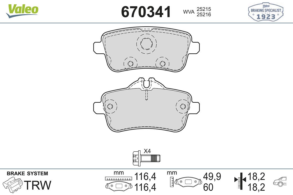 VALEO 670341 | Fren Balatası Arka Mercedes M-Serısısı W166 Ml 250 CDI Bluetec 4-Matıcml 11-Gl-Serısısı 12 -