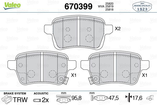 VALEO 670399 | Fren Balatası Arka 500L 12-1.4 1.6D Mjet Egea 16-