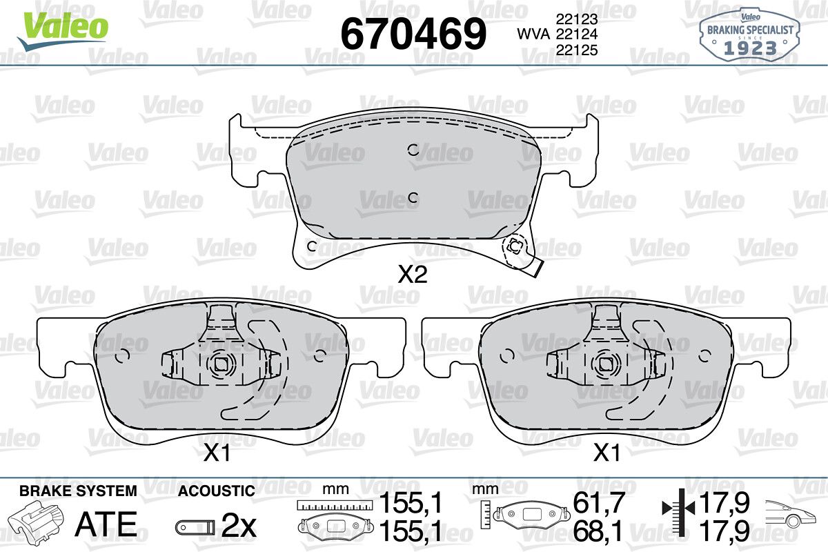 VALEO 670469 | Fren Balatası Ön 15 Jant Opel Adam 14-Corsa E 14 -