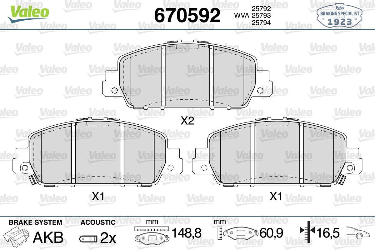 VALEO 670592 | Fren Balata Ön 16-Hr-V