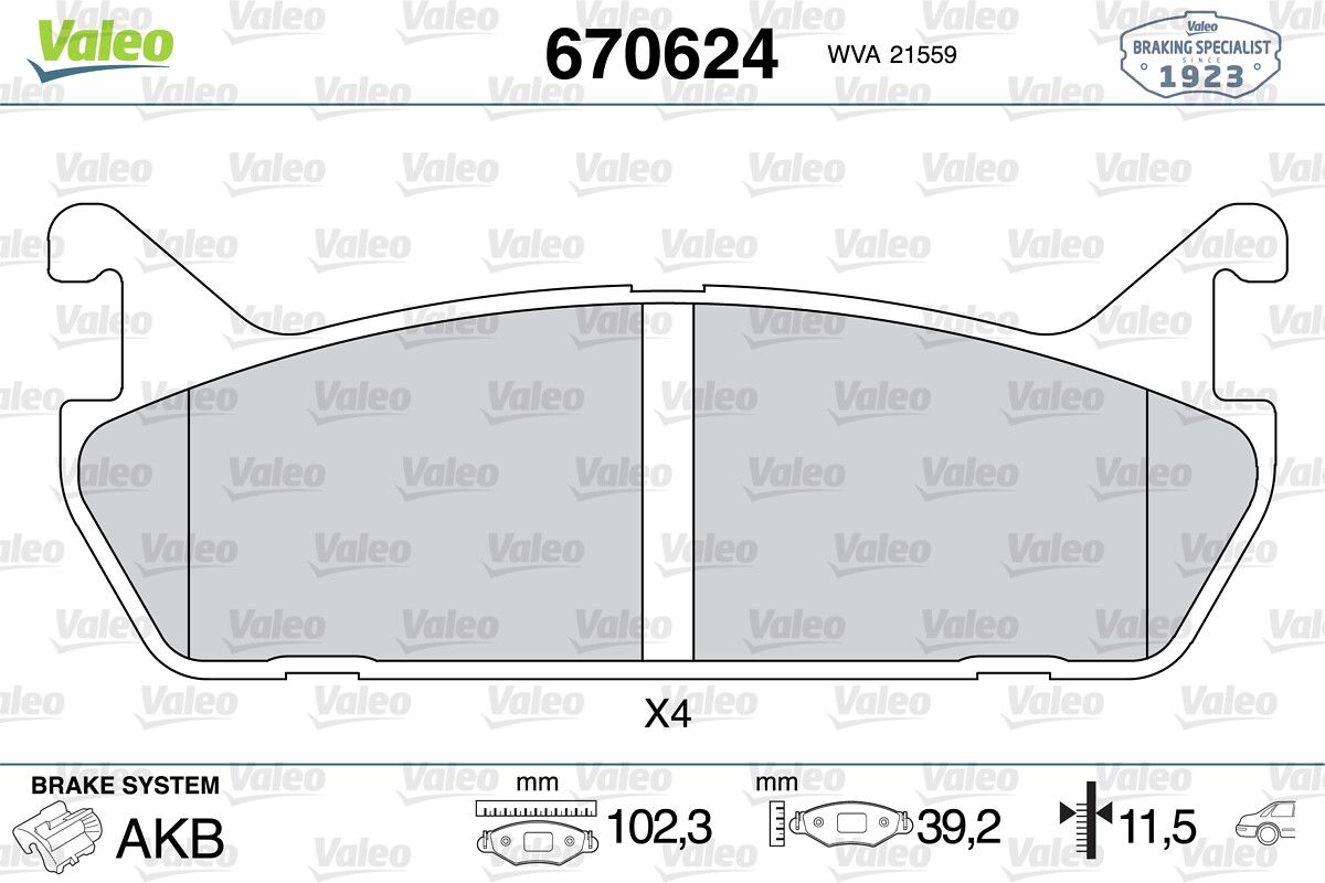 VALEO 670624 | Arka Fren Balatası Disk Mazda 323 92-94 | 1 Adet