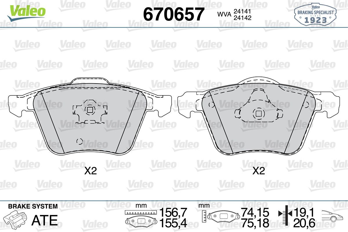 VALEO 670657 | Fren Balata Ön 03-Xc90 17Jant