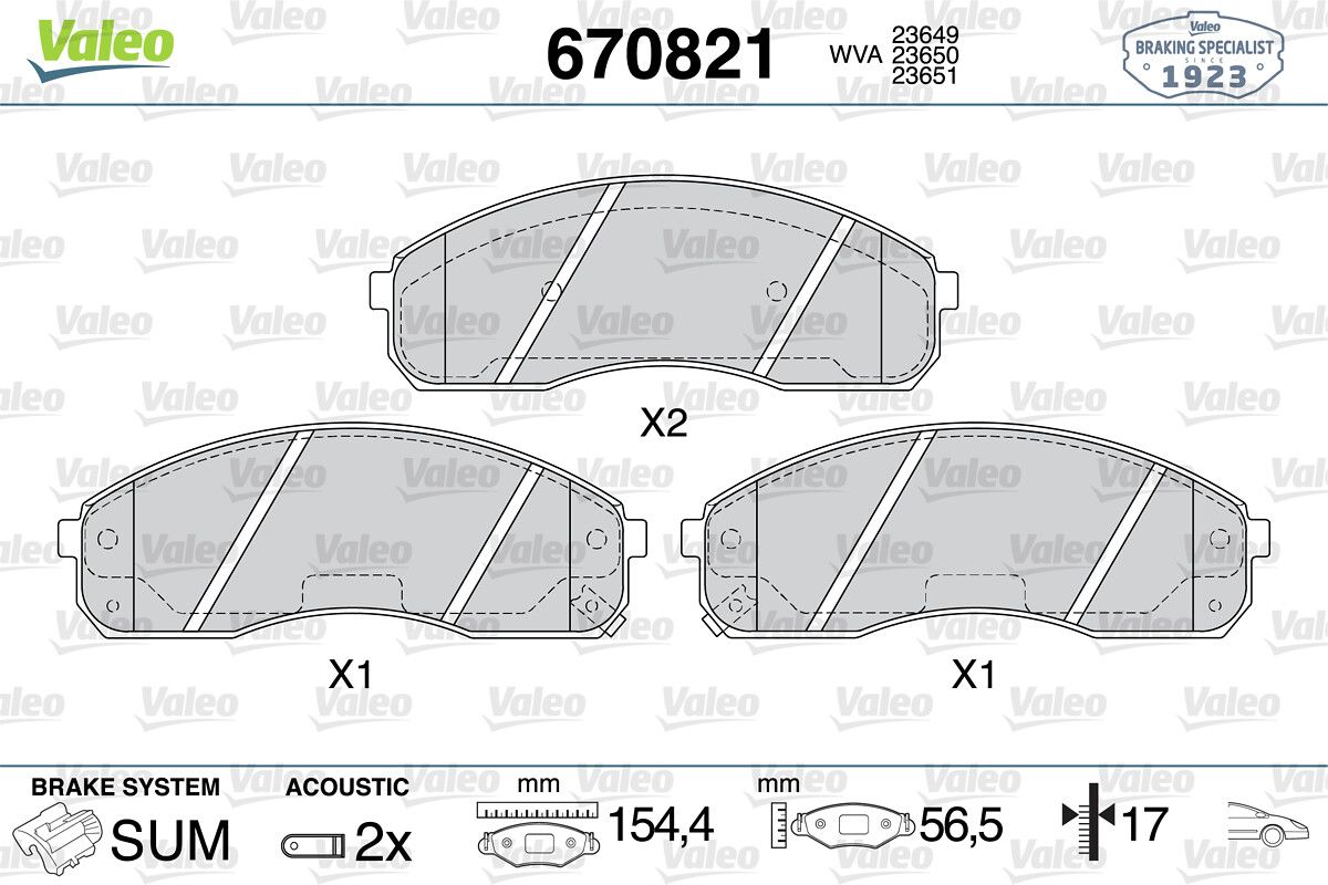 VALEO 670821 | Fren Balata Ön 04-H100 Kamyonet-Bongo