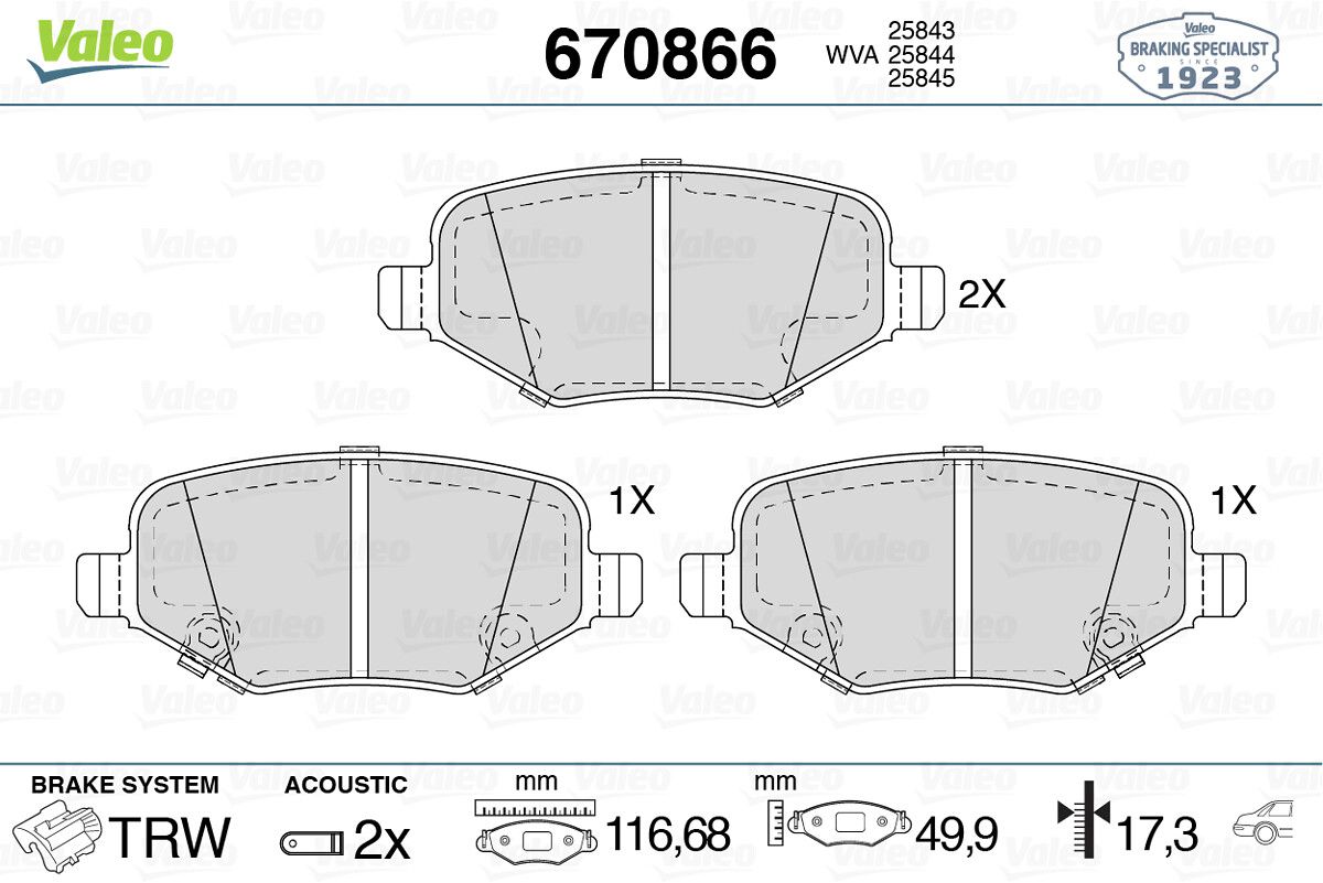VALEO 670866 | Fren Balatası Arka Chrysler Grand Voyager 3.6 11-Dodge Journey 2.4 3.6 10-Ford Explorer 15 -