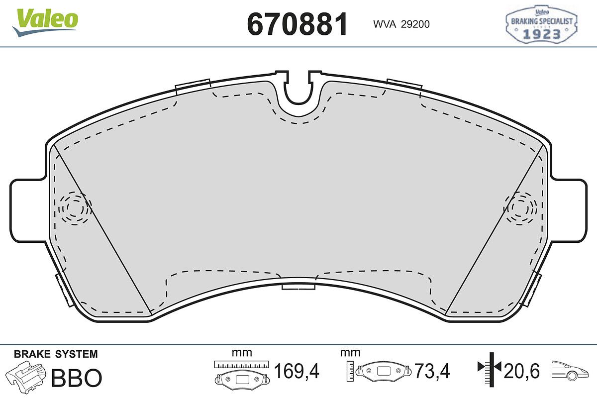 VALEO 670881 | Ön Fren Balatası-Çift Teker-(VW Crafter 06-16 Mercedes Sprinter 06-16 Sprinter 2017 W907)
