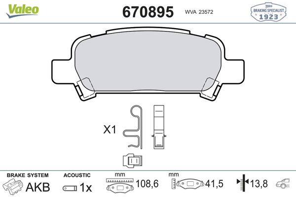 VALEO 670895 | Arka Fren Balatası Subaru Forester 2.0 97-02 Impreza 98-05 Legacy 98-03 Outback 00-03