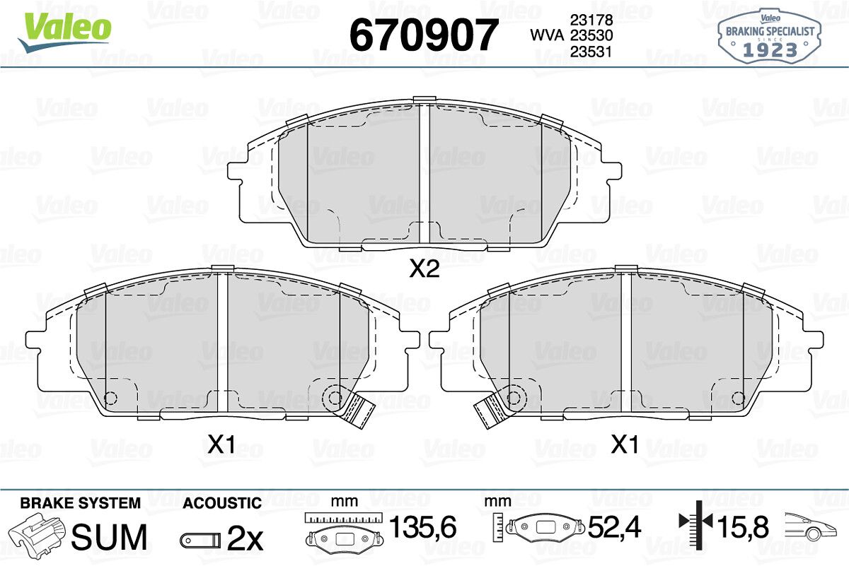 VALEO 670907 | Fren Balata Ön 97-06 Civic.Type-R 2.0İ