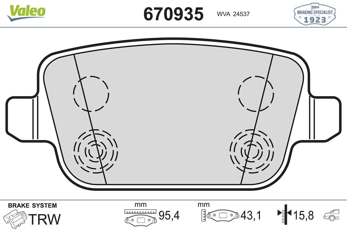 VALEO 670935 | Fren Balatası Arka (Ford Mondeo IV-S-Max 2.0Tdcı 07-\Kuga 2.0Tdcı-4X4 08 -) (Volvo S80 II-V70 II 2.0-2.0T 07 -) (Land Rover-Fre