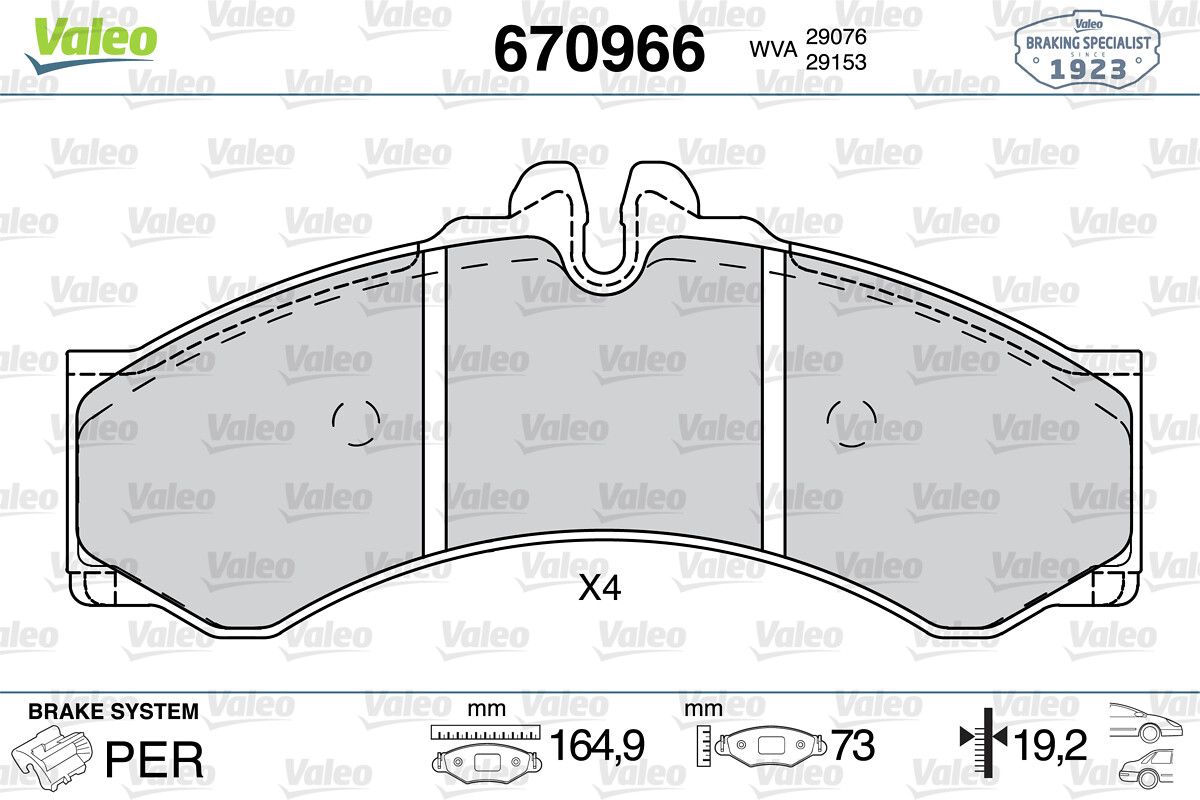 VALEO 670966 | Fren Balatası Ön Arka Çift Teker-VW Lt 97-07 Mercedes Sprinter 95-06