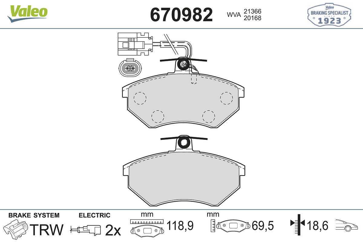 VALEO 670982 | Fren Balatası Ön-VW Golf 91-98 Vento 91-97