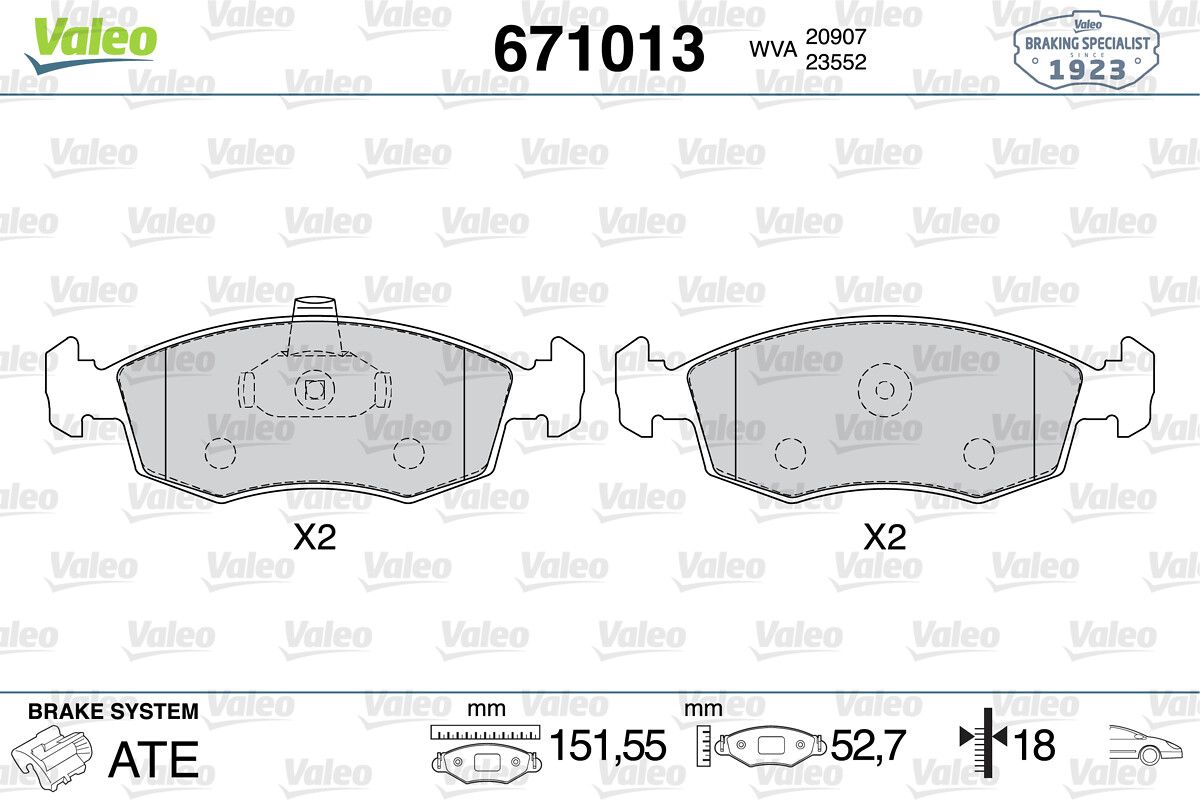 VALEO 671013 | Fren Balata Ön 03-06 Doblo