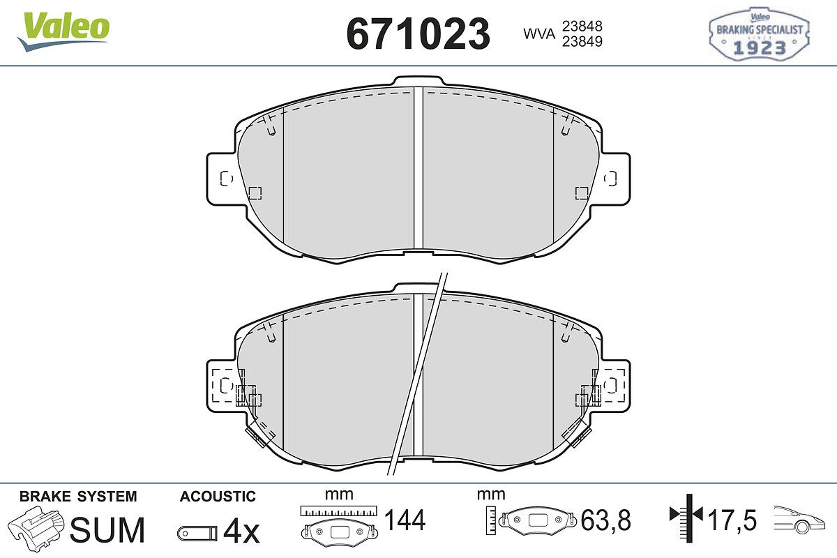 VALEO 671023 | Fren Balatası Ön Lexus Gs 300 3.0 06 / 91-03 / 05 Lexus Gs 400 4.0 08 / 97-12 / 00 Lexus Gs 430 4.3 07 / 00-12
