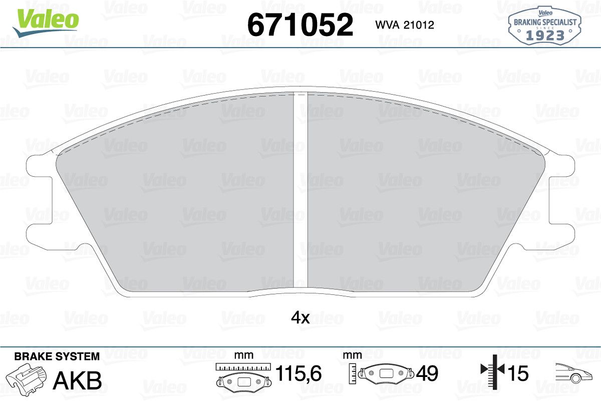VALEO 671052 | Fren Balata Ön <95 Pony