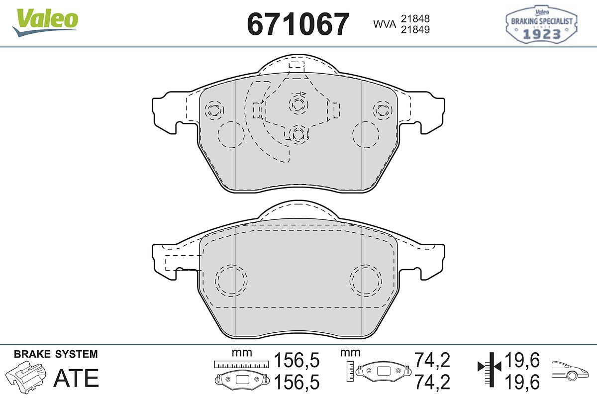 VALEO 671067 | Fren Balatası Ön-Ford Galaxy 95-06 VW Sharan 95-10 Seat Alhambra 96-10