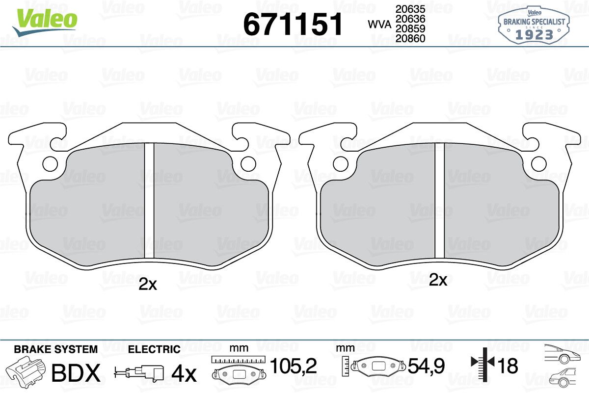 VALEO 671151 | Fren Balatası Ön Arka Citroen Bx Renault-Alpıne A310