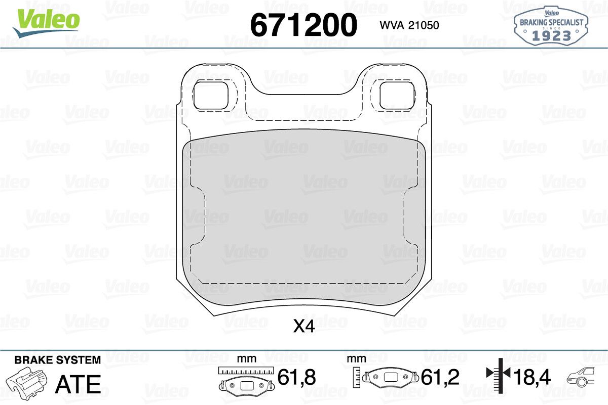VALEO 671200 | Fren Balatası Arka (61mm) Vectra B 99= >